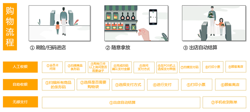 然而,支付只是结算环节的一部分,在支付之前,还需逐一扫描、识别全部商品,所以在高峰期仍免不了排队现象。为了减少由此造成的卡顿,目前市面上也涌现出了不少新业态。